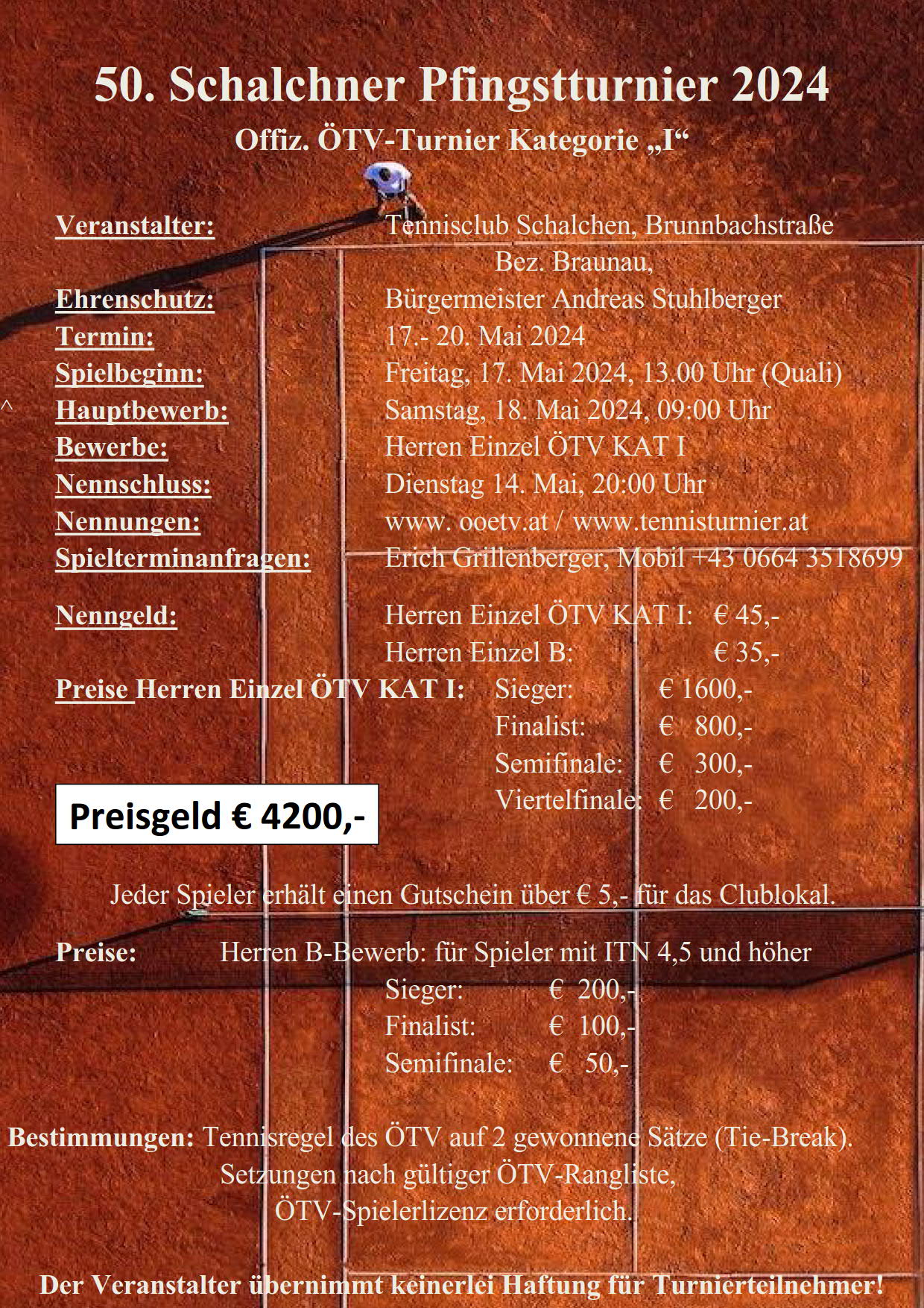 Anmeldung für das 50. Pfingstturnier des TC Schalchen